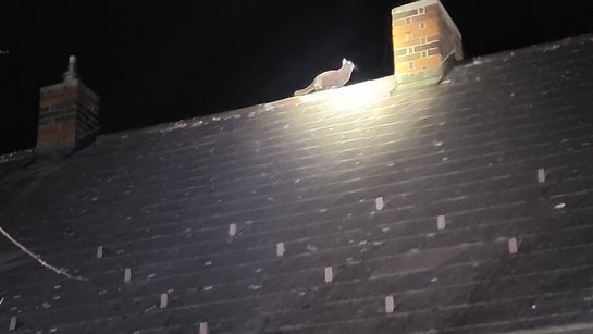 Eine Katze hatte sich auf den First eines Daches verirrt und konnte nicht mehr selbstständig herunter. Mithilfe einer Leiter konnte der Kater “Blacky” wieder sicher zu seiner Familie gebracht werden.
